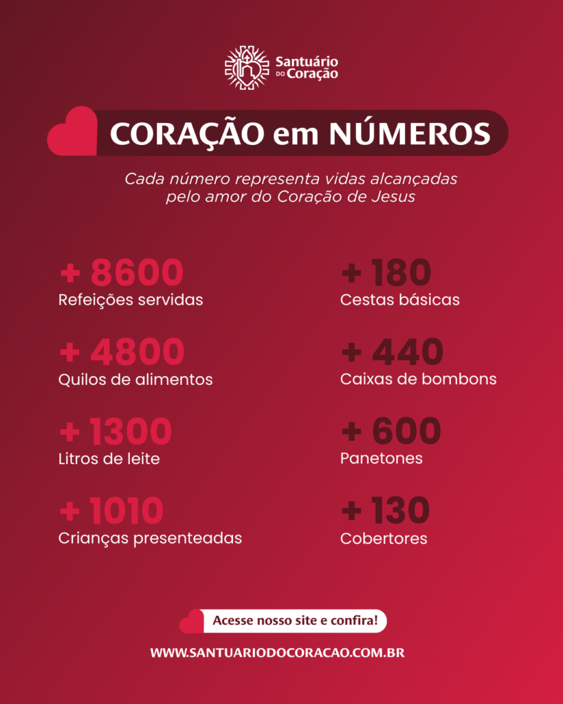 Ao longo de 2025, o Santuário Sagrado Coração de Jesus, por meio da Pastoral Social, viveu de forma concreta o Evangelho do amor e da solidariedade, tornando visível que o melhor lugar para estar é no Sagrado Coração de Jesus. Unidos como comunidade, fomos instrumentos de cuidado, partilha e esperança junto aos irmãos e irmãs em situação de vulnerabilidade.